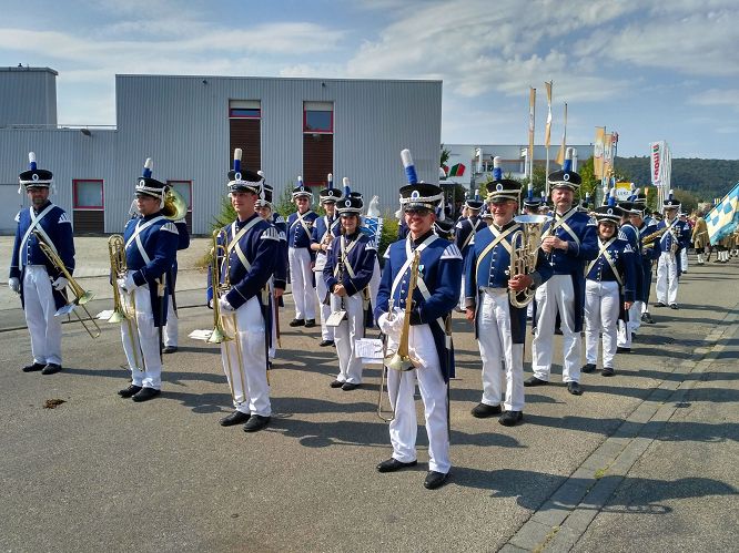 Beim Großen Umzug mit circa 100 Teilnehmern war von Fanfarenzug bis zu Trachtentanzgruppen alles vertreten. Auch die Stadt-und Bürgerwehrmusik machte an 13. Stelle eine gute Figur und konnte einmal mehr unter Beweis stellen, dass nicht nur ein reines Konzertorchester in ihnen steckt. Mit Märschen wie „Ein Mann ein Wort“, „Laridah“ und „ Musketiermarsch“ begeisterten sie die zahlreichen Zuschauer. Trotz großer Hitze mit über 30 Grad, welche durch die historische Bürgerwehruniform nicht leichter zu ertragen war, zeigten die Musiker, mit welchem Ehrgeiz sie hinter ihrem Orchester stehen.