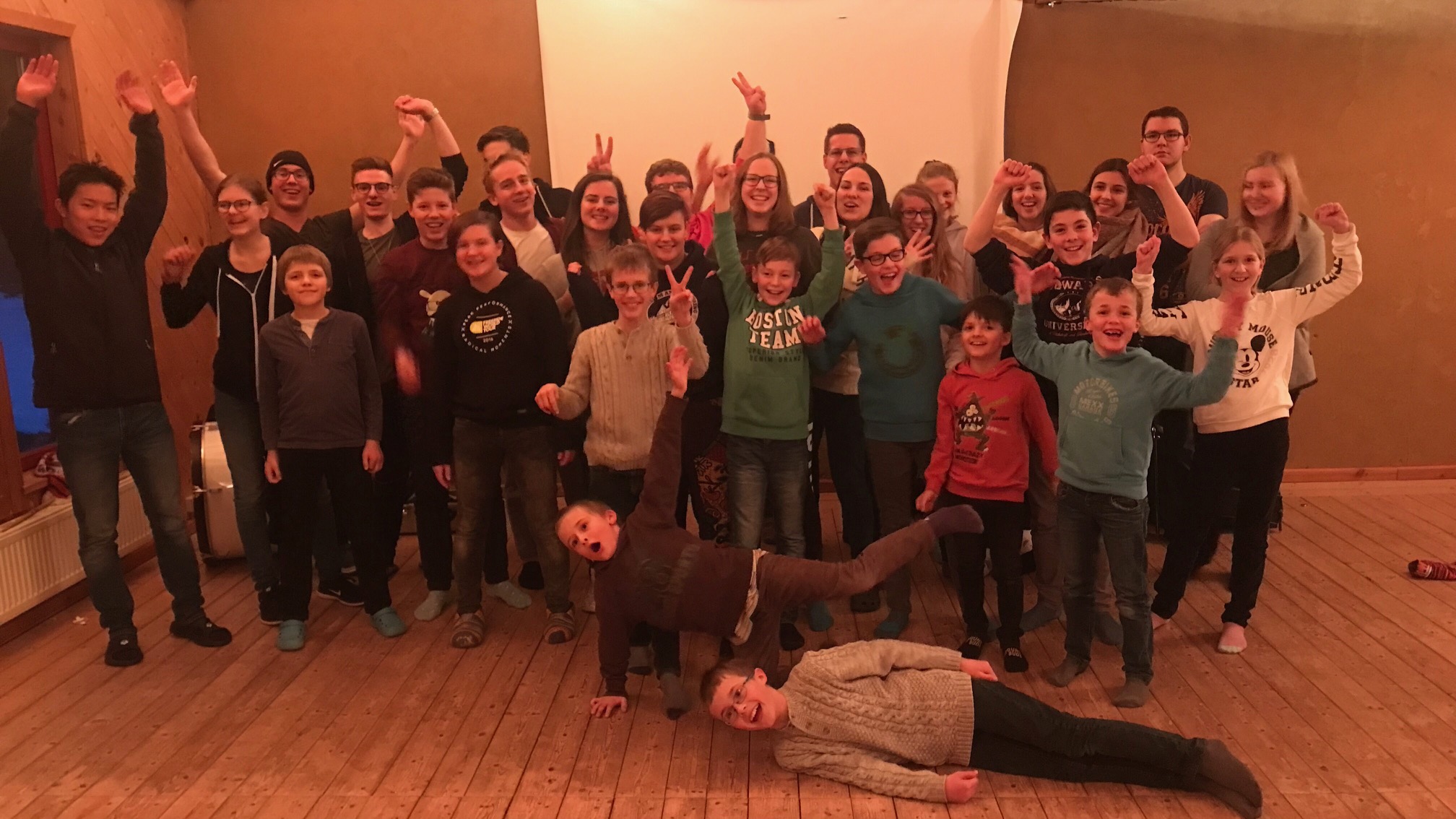 Am Freitagnachmittag begaben sich die jungen Musiker zum Naturfreundehaus Hirzwald. Die kleine abgelegene Hütte eignete sich perfekt für die geplanten Aktivitäten unseres Nachwuchses. Los ging es am Freitagabend mit einem gemeinsamen Abendessen, untermalt von Fasnetständchen. Zwei Rechenkünstlern war es zu verdanken, dass die Musiker in Spaghetti versanken. Der Hunger beim Einkaufen muss wohl sehr groß gewesen sein! Frisch gestärkt ging es dann in verschiedenste Teamspiele, die den eh schon starken Teamgeist der Gruppe weiter stärken sollten und viel Spaß bereiteten.