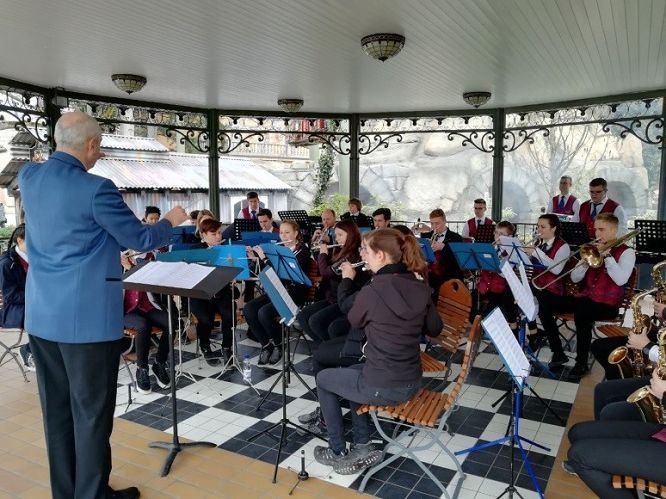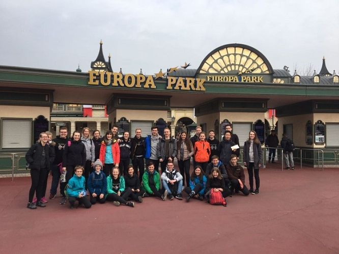 Hierbei trotzen die Jugendlichen den frostigen Temperaturen, die sie zum Glück noch von der Fasnet noch gewöhnt waren. Nach einem gelungenen Auftritt, welcher unter einem wunderschönen Pavillon im französischen Bereich des Parkers stattfand, wurden die Instrumente im Bus verstaut. Besonders der Schlagzeugtransport zog dabei einige überraschte Blicke der Parkbesucher auf sich. So war es immer wieder eine Herausforderung die großen Pauken durch die engen Drehtüren zu manövrieren, was allerdings der guten Stimmung des Jugendorchesters keinen Abbruch tat. Als endlich alles verstaut war, konnte das Highlight des Tages losgehen. In kleine Gruppen aufgeteilt machten sich alle 34 Musiker eingeschlossen des Dirigenten auf den Weg in den Park um sein Abenteuerangebot zu erkunden. Jede Achterbahn wurde ausprobiert und jede noch so kleine Attraktion mitgenommen. Vor allem die großen Achterbahnen fanden viel Anklang. Die steilen Abfahrten und schnellen Drehungen verleiteten die jungen Musiker zu einigem Gekreische, welches, ganz im Gegensatz zum instrumentalen Spiel des Auftritts davor, weniger harmonisch klangen.