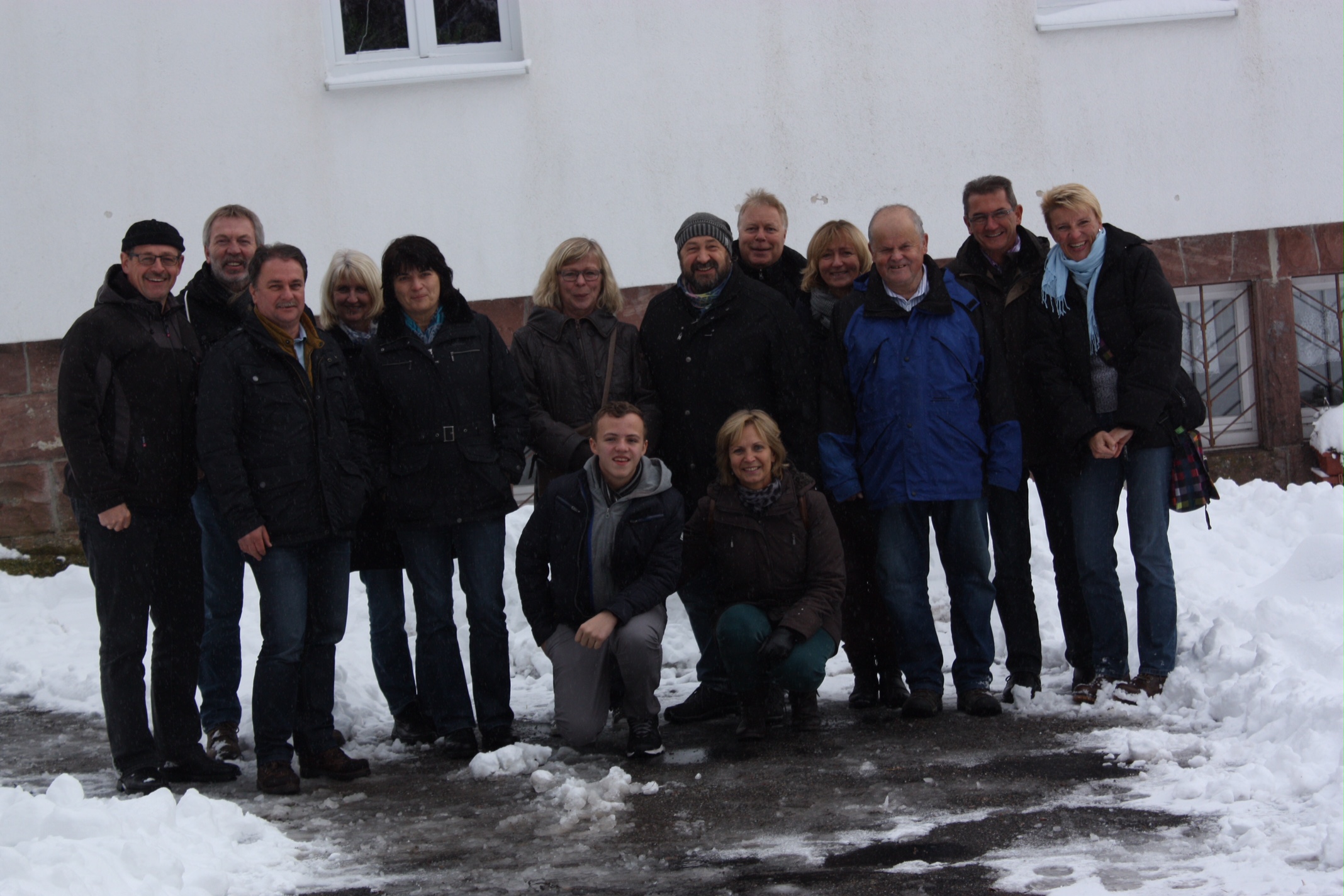 Über die Loipe, die zu dem Zeitpunkt noch ohne Schnee war, ging es über den Aussichtspunkt Elbachseeblick zurück zur Kniebishütte, wo dann die Wanderer noch zum Vespern einkehrten. Zwischenzeitlich hatte es begonnen stark zu schneien und so war die kurze Fahrt zum Naturfreundehaus dann recht abenteuerlich, zumal noch keine Räumfahrzeuge unterwegs waren. In der Zwischenzeit war auch der Rest der Spielsmannszügler eingetroffen und so konnte ein gemütlicher Abend mit gutem Essen, viel Wein und Bier und auch ein bisschen Schnaps beginnen. Am nächsten Morgen nach dem Frühstück ging es noch auf eine kleinere Runde durch die verschneite Gegend, bevor es dann ein tolles Mittagessen auf der Kniebishütte gab.
